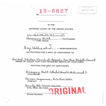 Cuando se le negó el permiso respectivo, Holt argumentó ante una corte de distrito que las políticas del centro violaban el Religious Land Use and Institutionalized Persons Act of 2000 (RLUIPA), que consagra el derecho a la libertad religiosa. La corte rechazó su demanda señalando que el solicitante podía ejercer su libertad religiosa por otros medios, y no únicamente a través del uso de una barba. Cuando una corte de apelación confirmó esta resolución, Holt presentó un recurso ante la Corte Suprema.