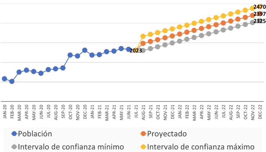 Fuente: elaboración propia con datos del Cuaderno Mensual de Información Estadística Penitenciaria Nacional (2021), con proyección a diciembre del 2022