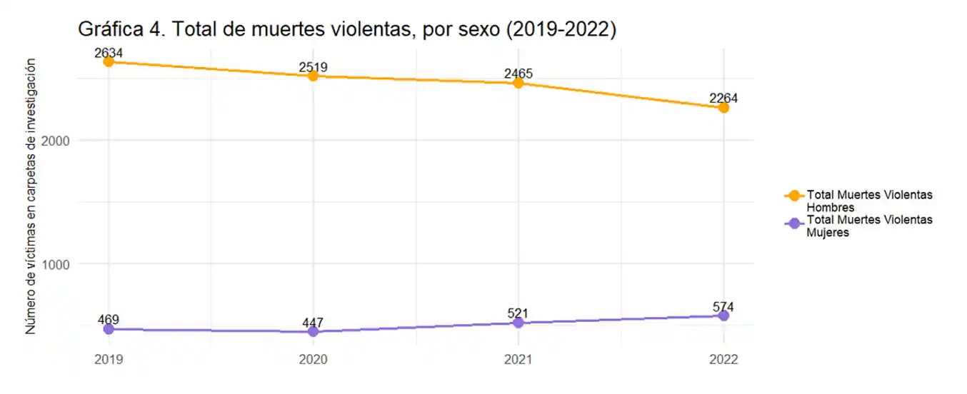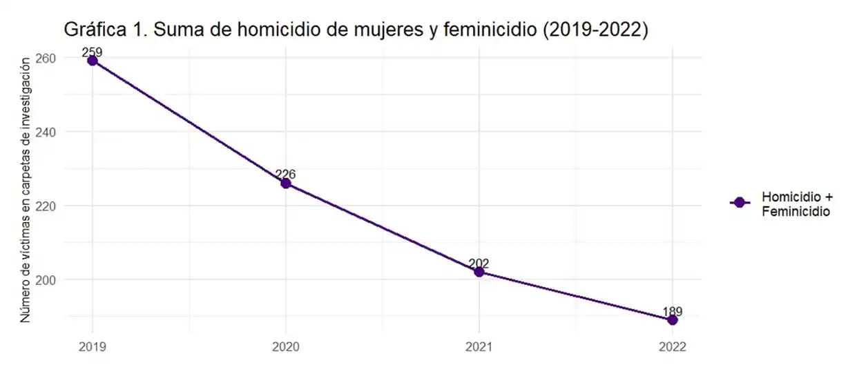 Sin embargo, las conclusiones no son las mismas ni positivas al analizar el número de muertes de mujeres por homicidio, feminicidio y la pérdida de vida de intención no determinada (IND).