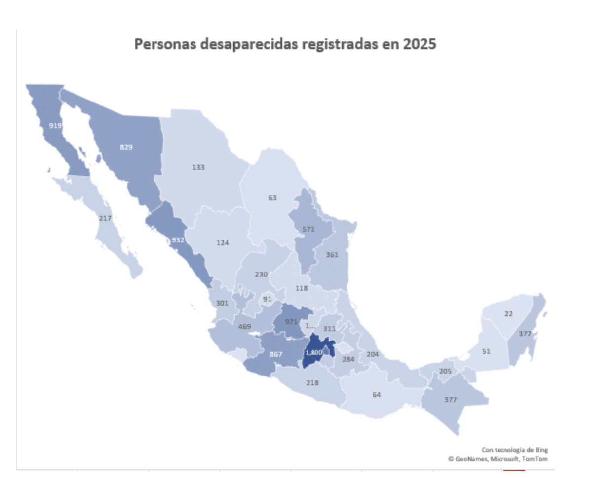 - Guanajuato: +55% (pasando de registrar 625 en 2024, a 971 en 2025).