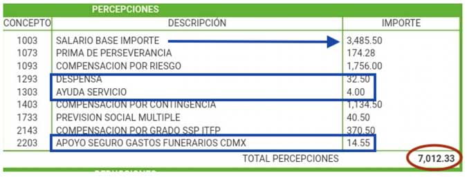 Gráfico 1: Recibo de nómina de un agente de policía de la Ciudad de México